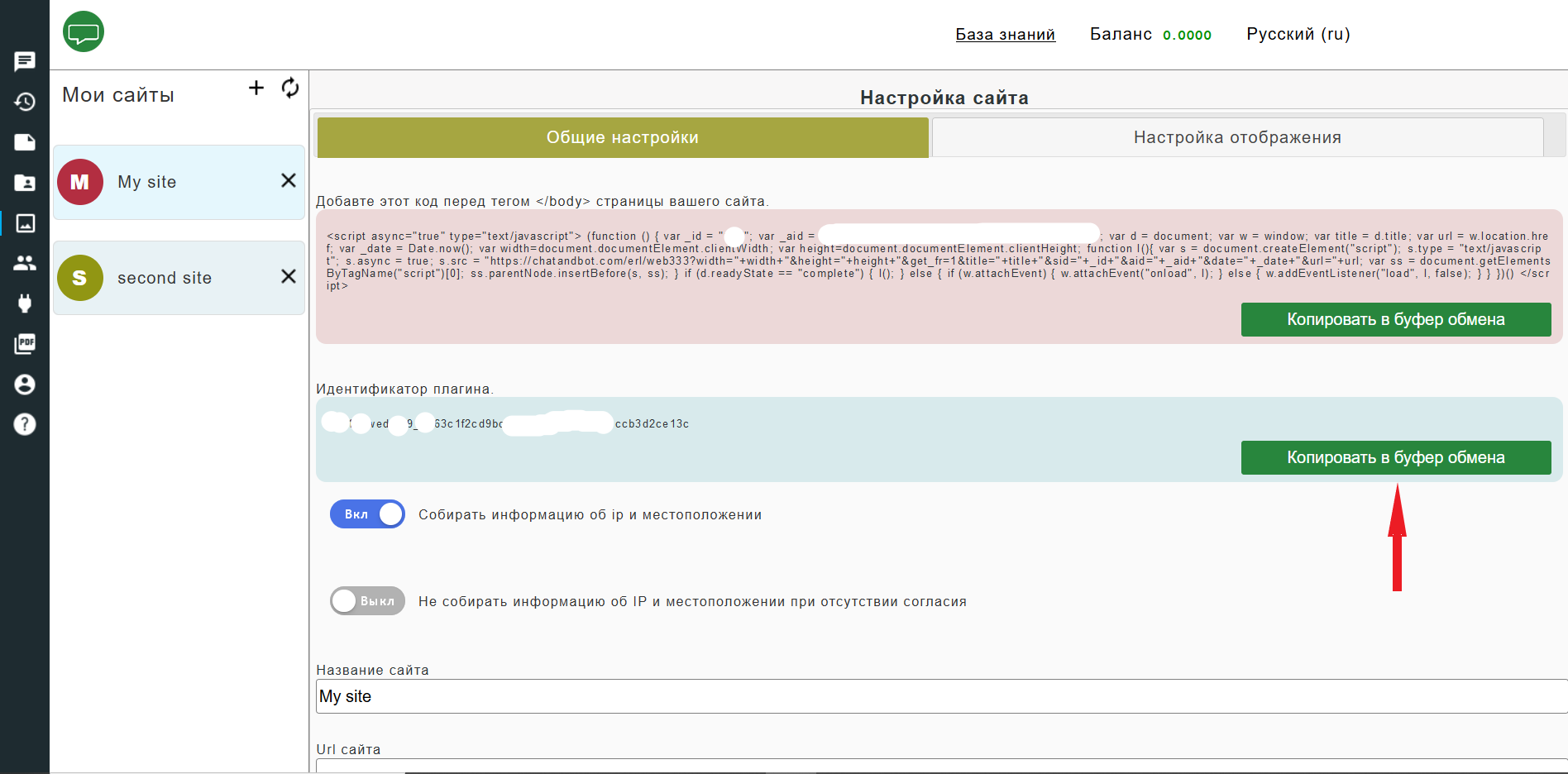 5. Копируем “Идентификатор плагина” используя кнопку “Копировать в буфер обмена”